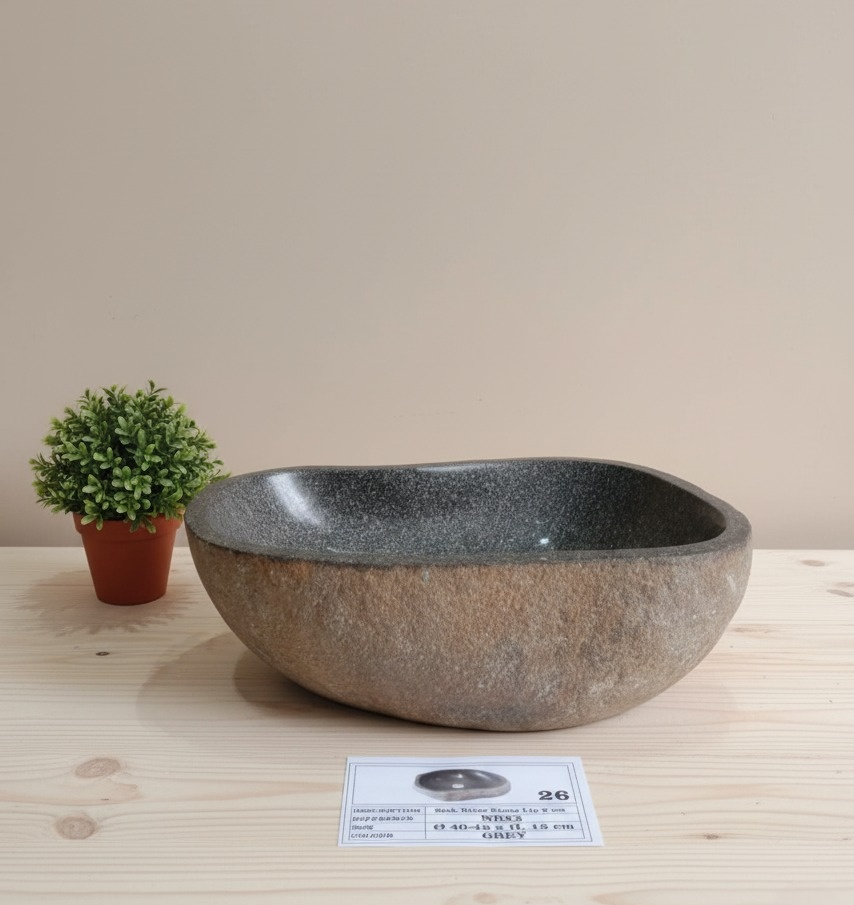 Discover our exquisite natural river stone sinks, meticulously hand-carved and polished by master artisans from Indonesia. Each sink is unique, showcasing the natural variations of river stone, making every piece one-of-a-kind.