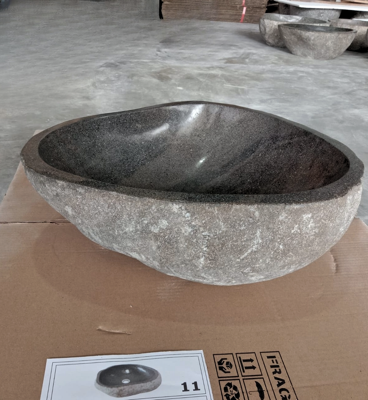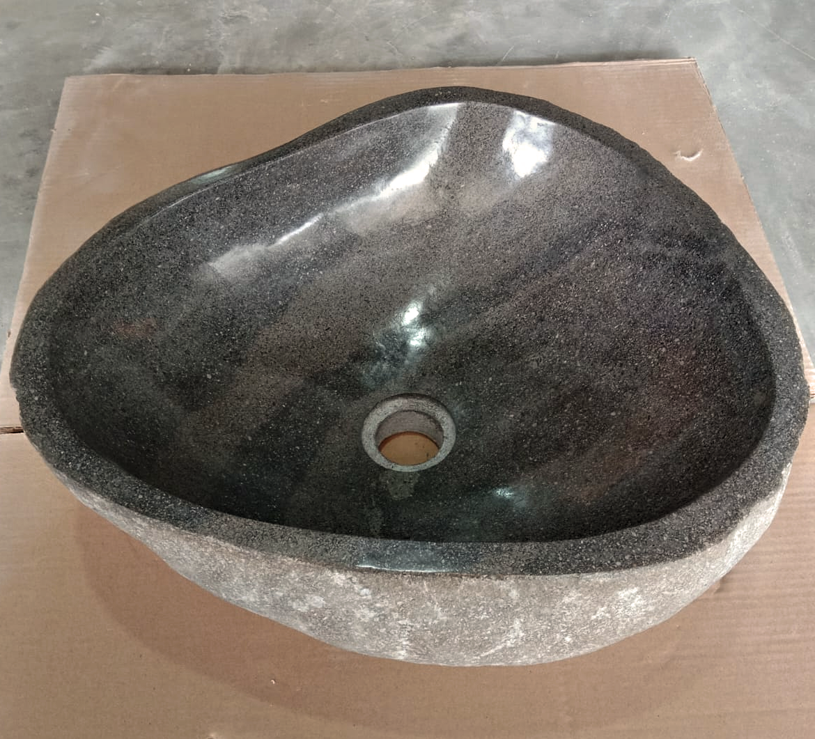Discover our exquisite natural river stone sinks, meticulously hand-carved and polished by master artisans from Indonesia. Each sink is unique, showcasing the natural variations of river stone, making every piece one-of-a-kind.