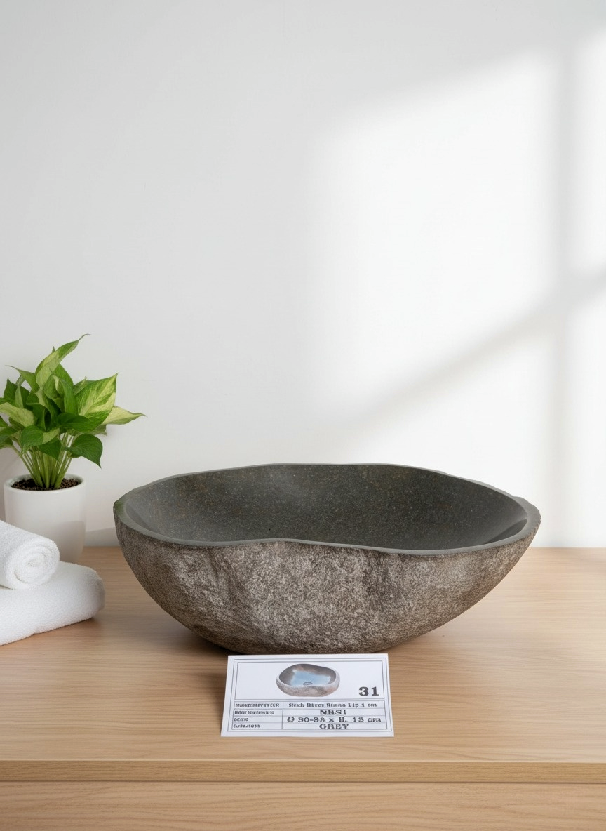 Discover our exquisite natural river stone sinks, meticulously hand-carved and polished by master artisans from Indonesia. Each sink is unique, showcasing the natural variations of river stone, making every piece one-of-a-kind.