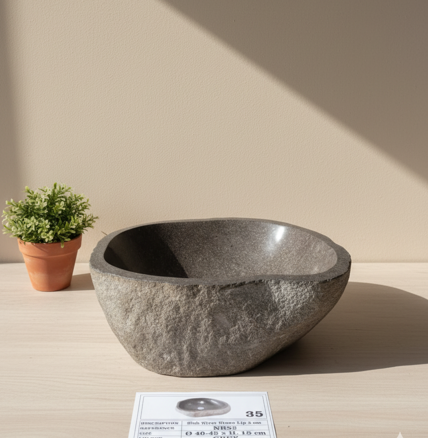 Discover our exquisite natural river stone sinks, meticulously hand-carved and polished by master artisans from Indonesia. Each sink is unique, showcasing the natural variations of river stone, making every piece one-of-a-kind.