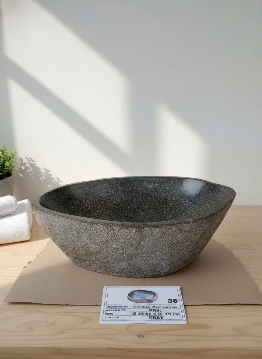 Discover our exquisite natural river stone sinks, meticulously hand-carved and polished by master artisans from Indonesia. Each sink is unique, showcasing the natural variations of river stone, making every piece one-of-a-kind.