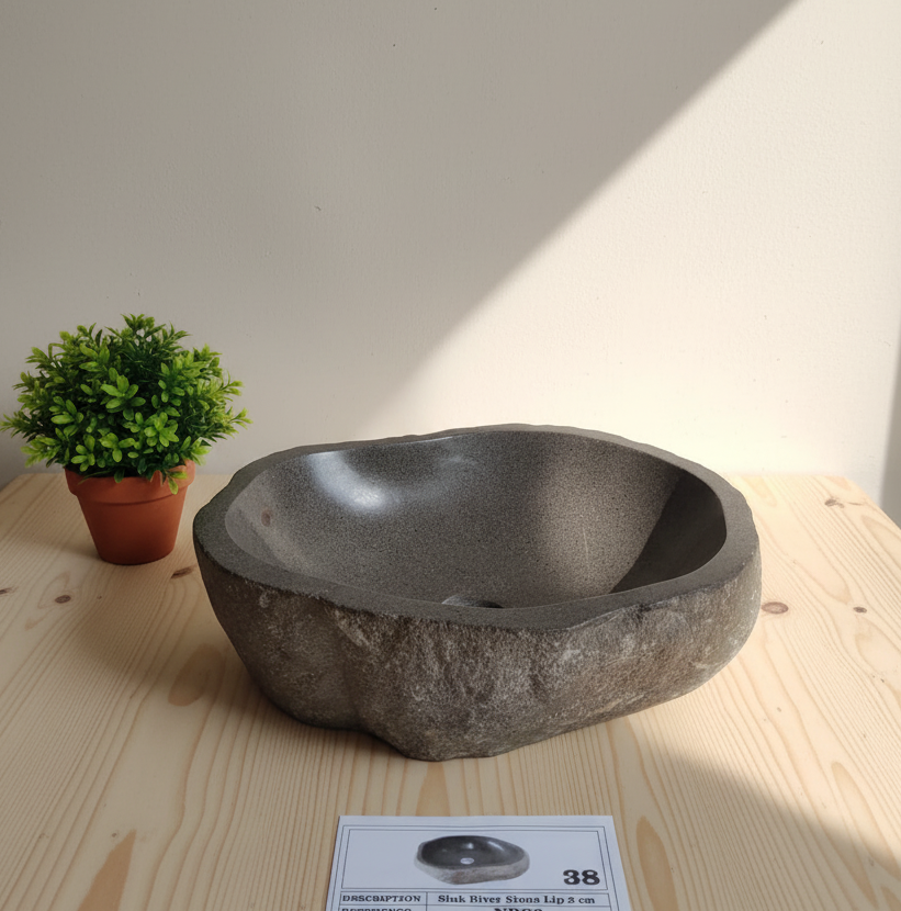 Discover our exquisite natural river stone sinks, meticulously hand-carved and polished by master artisans from Indonesia. Each sink is unique, showcasing the natural variations of river stone, making every piece one-of-a-kind.