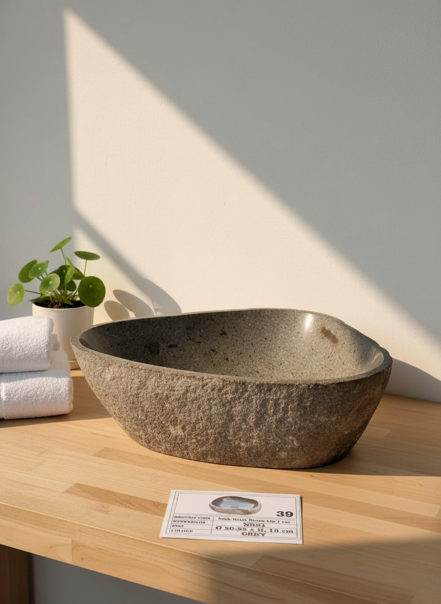Discover our exquisite natural river stone sinks, meticulously hand-carved and polished by master artisans from Indonesia. Each sink is unique, showcasing the natural variations of river stone, making every piece one-of-a-kind.