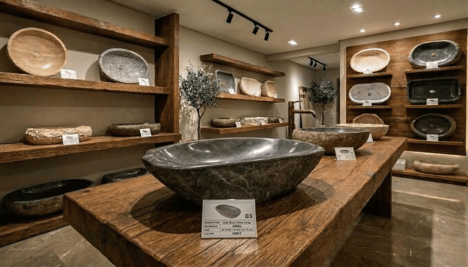 Experience the beauty of nature with our handcrafted double basins, carved from Indonesian river stone.