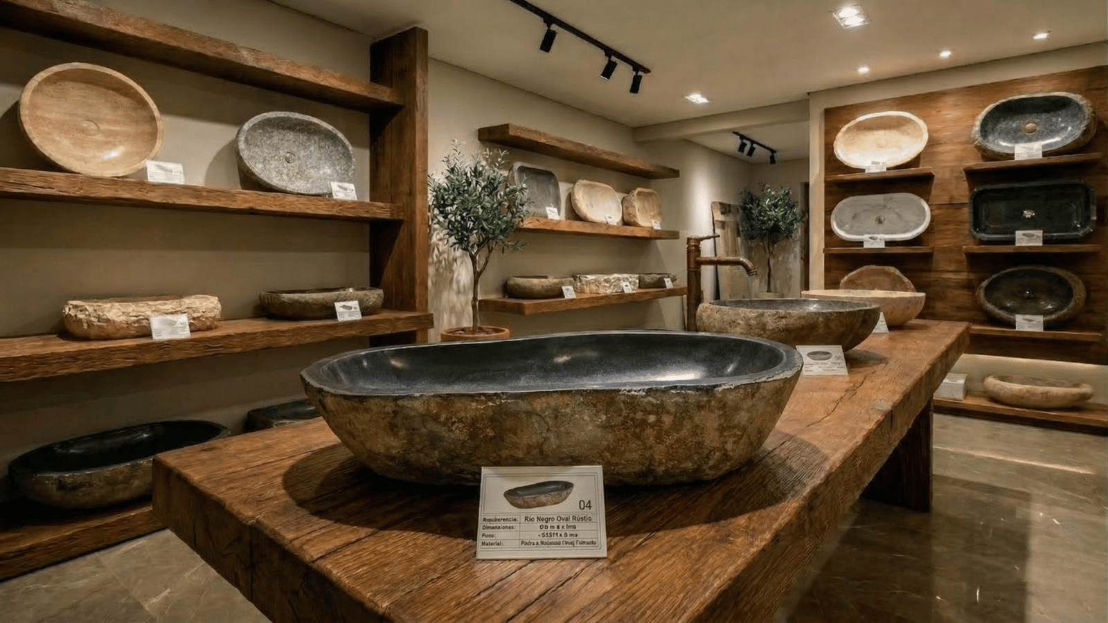Experience the beauty of nature with our handcrafted double basins, carved from Indonesian river stone.