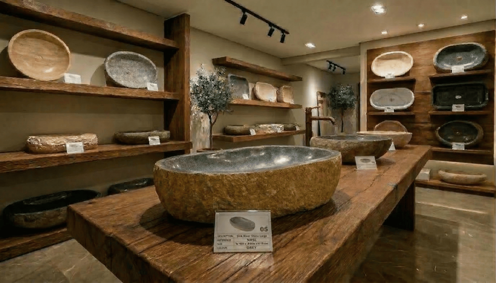 Experience the beauty of nature with our handcrafted double basins, carved from Indonesian river stone.