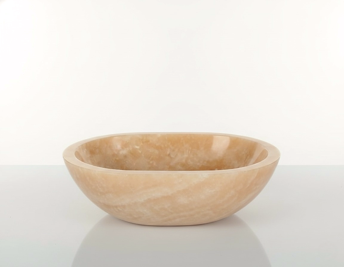 Embrace the captivating allure of nature with this exquisite hand-chiseled onyx basin, meticulously crafted from the heart of Bali Island, Indonesia. Onyx, renowned for its captivating hues and exceptional polish.