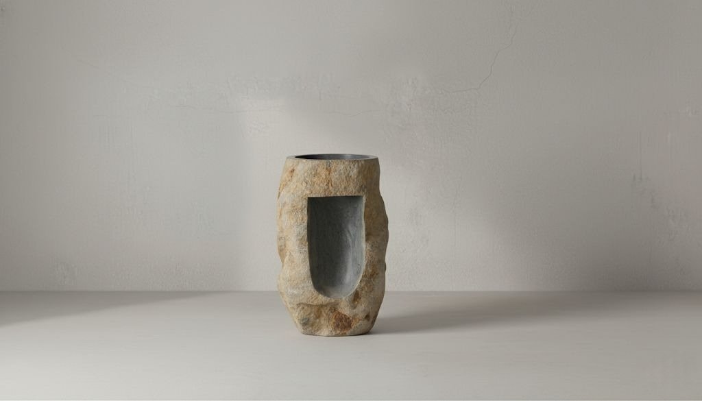 Handcrafted elegance for your bathroom. This unique sink, carved from a single piece of Indonesian river stone, blends timeless beauty with sustainability.