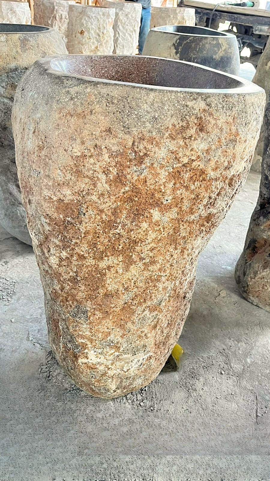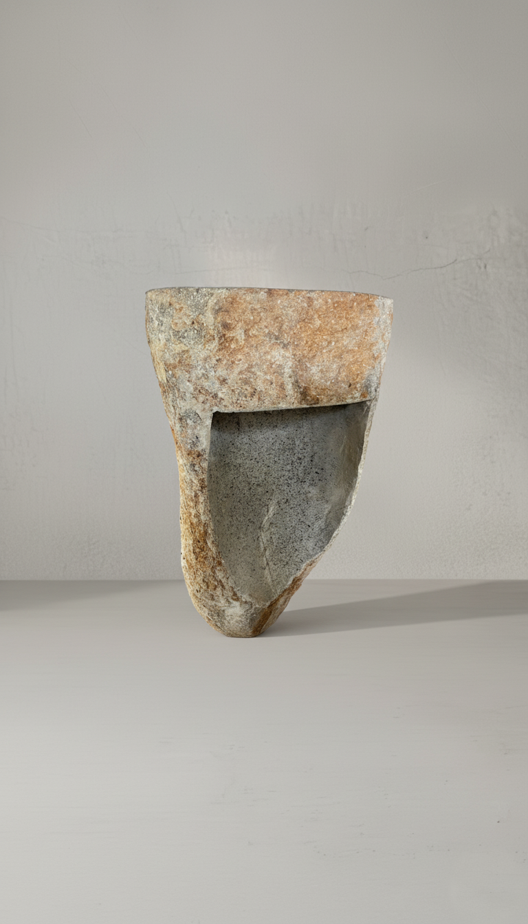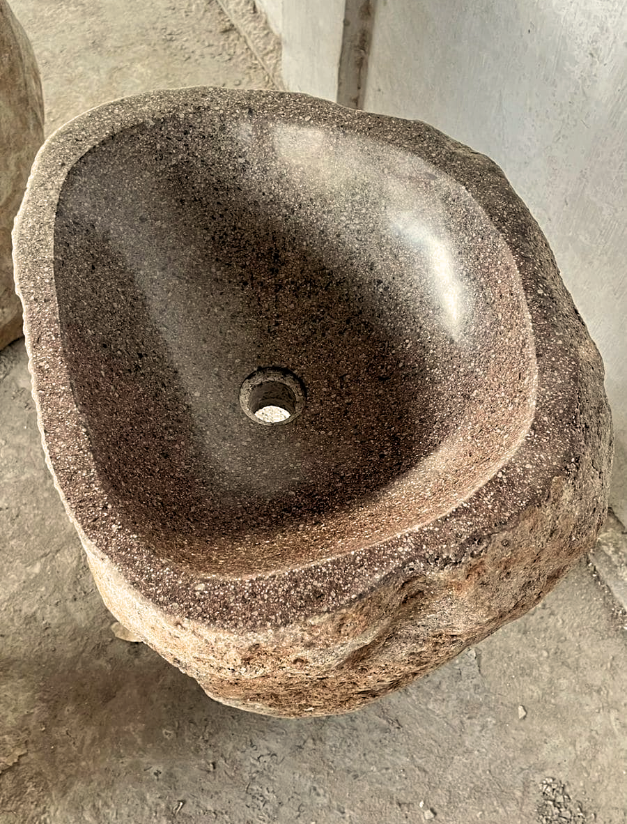 Handcrafted elegance for your bathroom. This unique sink, carved from a single piece of Indonesian river stone, blends timeless beauty with sustainability.
