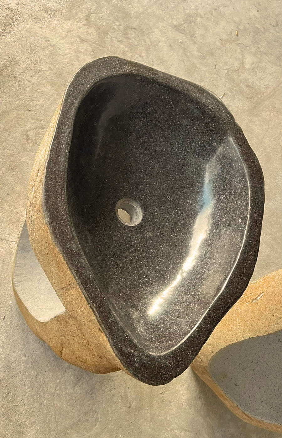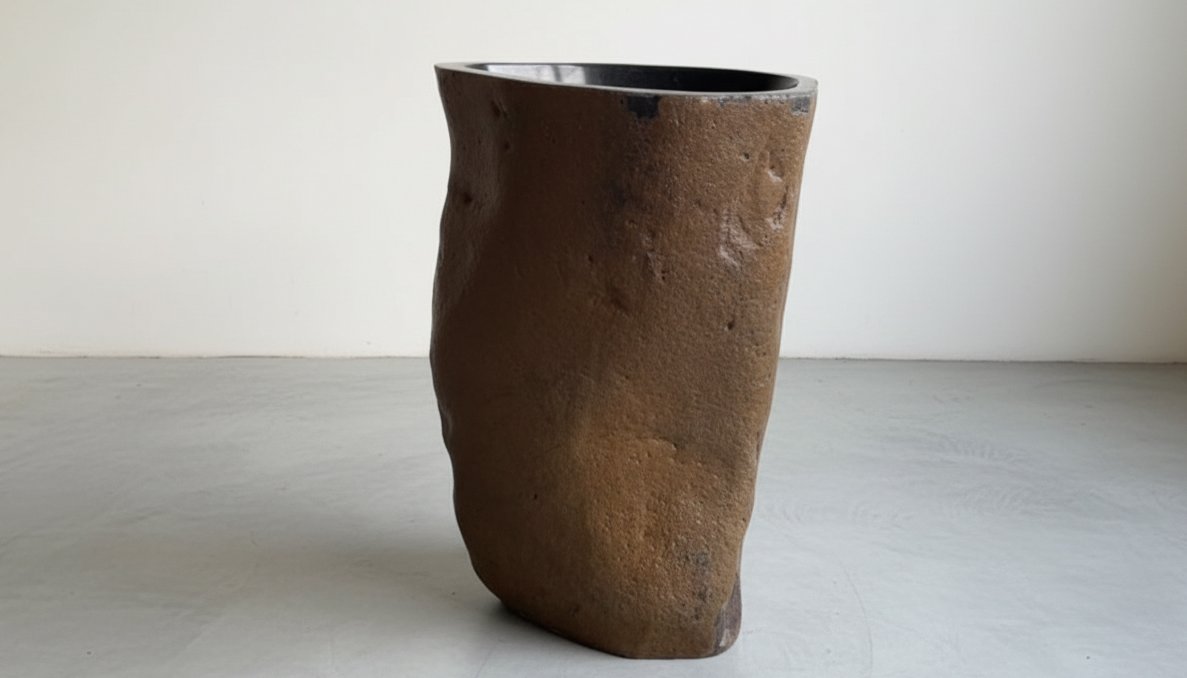 Handcrafted elegance for your bathroom. This unique sink, carved from a single piece of Indonesian river stone, blends timeless beauty with sustainability.