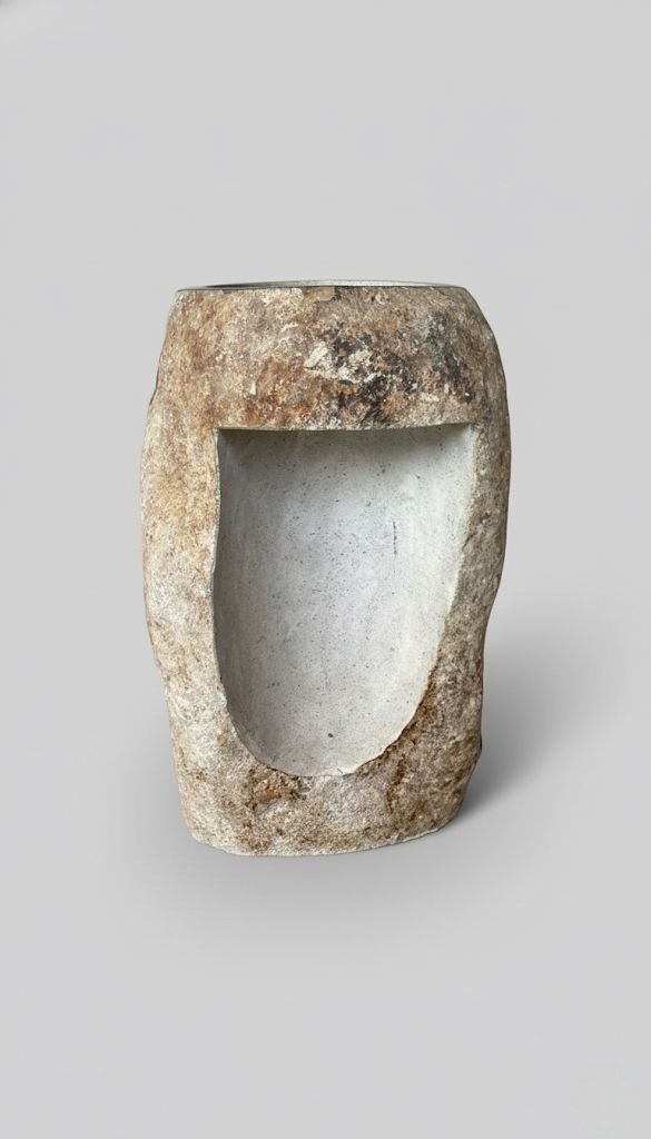 Handcrafted elegance for your bathroom. This unique sink, carved from a single piece of Indonesian river stone, blends timeless beauty with sustainability.