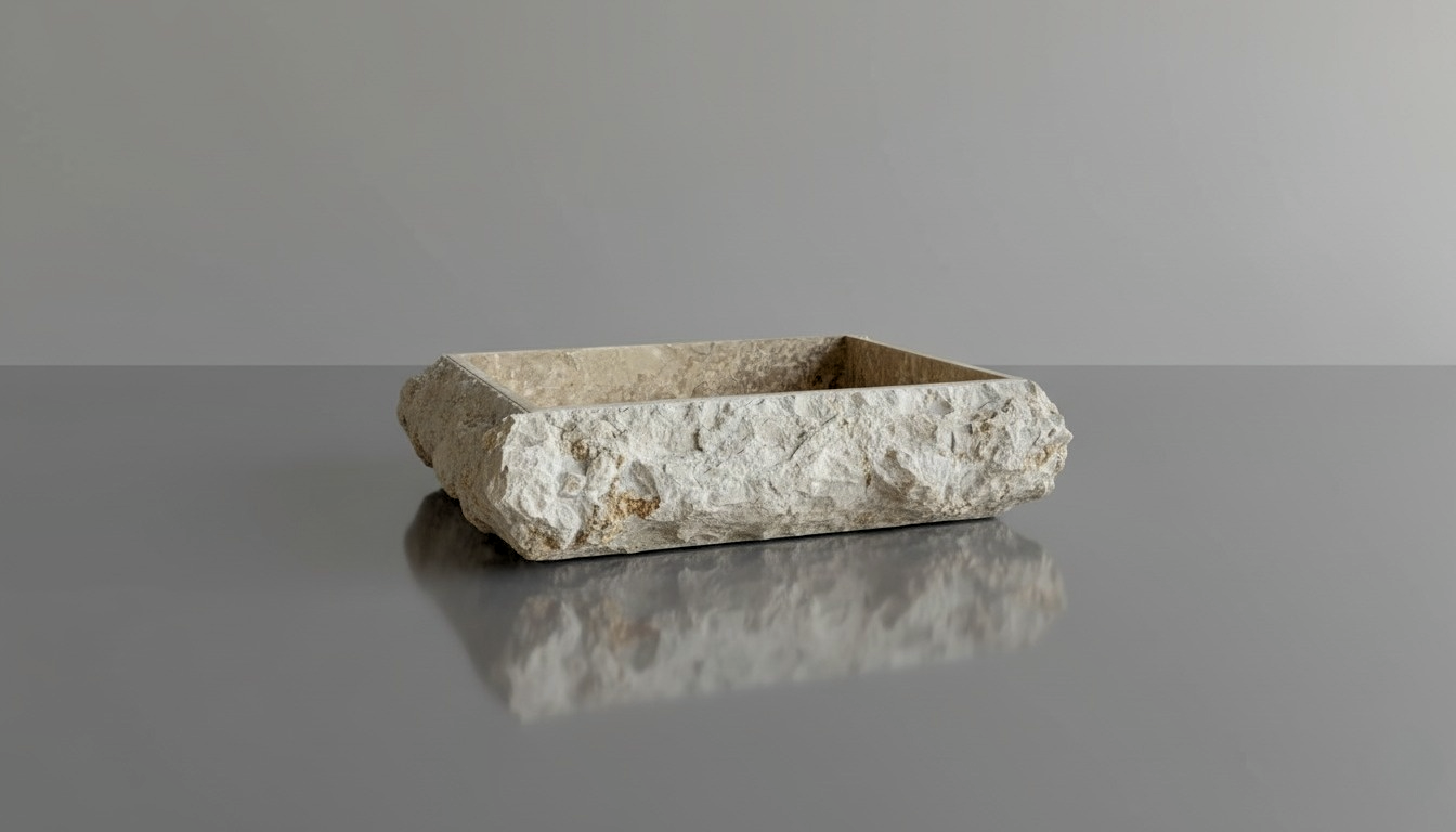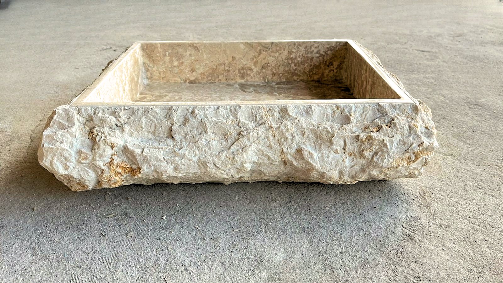 Incredible natural stone sink, a unique piece crafted from high-quality textured marble.